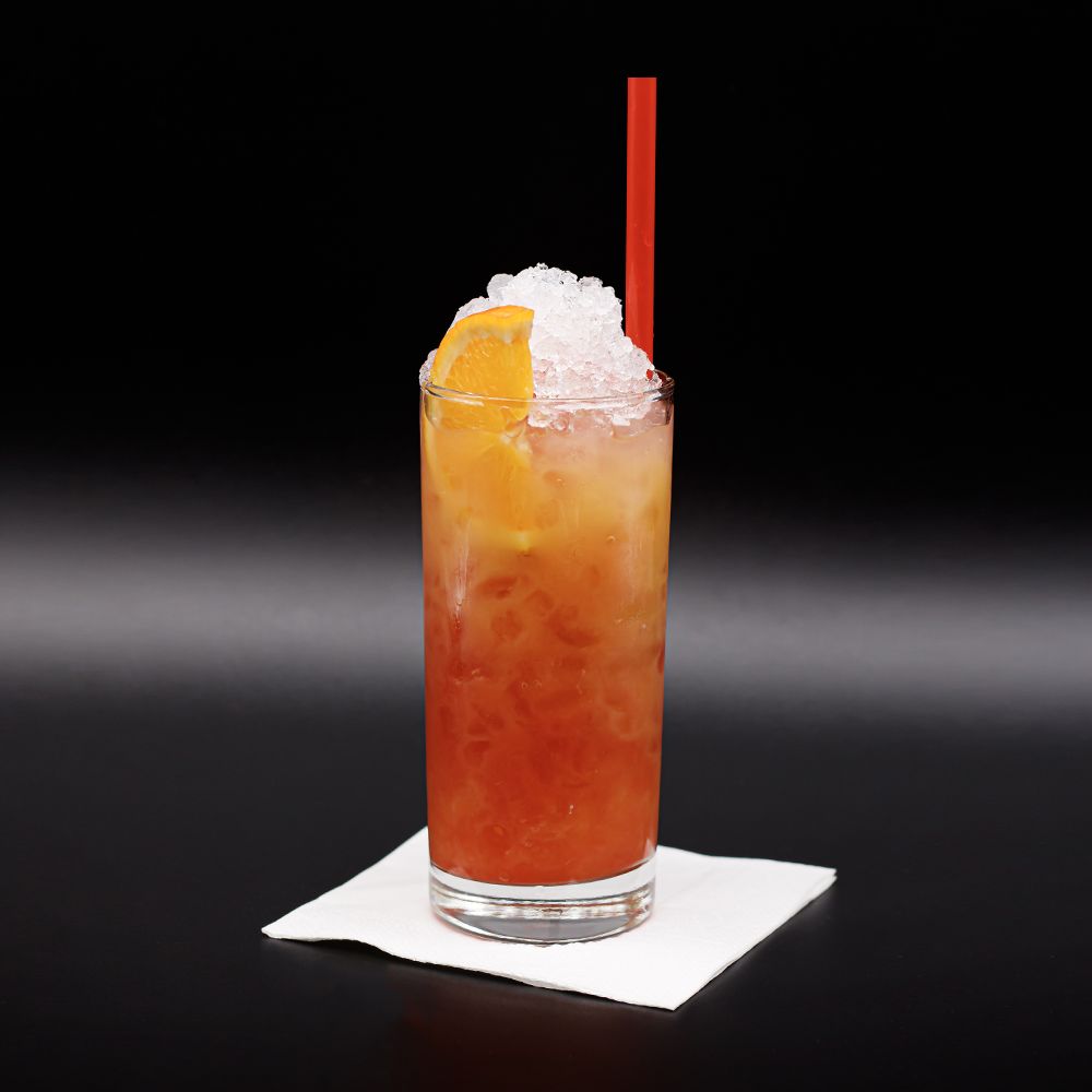 Absolut vodka, broskvový likér, grenadina, pomerančový džus, brusinkový džus, pomeranč, led
